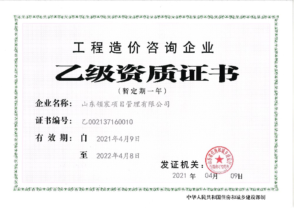 山東領宸項目管理有限公司是一家以全過程工程咨詢?yōu)楹诵牡淖稍兎展荆竟粳F具備工程造價咨詢乙級資質,房屋建筑工程、市政工程監(jiān)理乙級資質和招標代理備案。公司擁有專業(yè)的工作團隊及豐富的行業(yè)經驗,在行業(yè)領域內具有雄厚的實力,企業(yè)管理人員擁有行業(yè)20年以上的資深行業(yè)工作經驗。公司現有專業(yè)技術人員50余人,具有一級注冊造價工程師、注冊監(jiān)理工程師、一級注冊建造師、二級注冊建造師、招標師等工程類國家注冊執(zhí)業(yè)資格證書人員合計30余人以及高級工程師3人,持證上崗率達到90%......